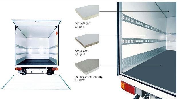 Jel kaplı FRP sandviç paneller, kendi kendini temizleyen, anti-uv, anti-statik vb.Olabilir, en popüler uluslararası kamyon gövdesi ve van panelidir.
